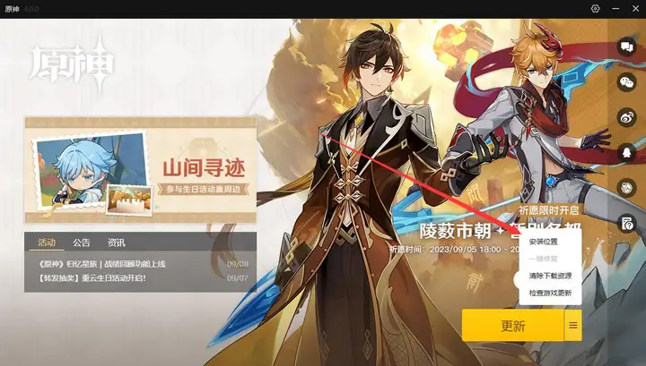获取Genshinimpact PC 4.0中国版,确保资源下载完成,然后回到官服启动器,点击启动按钮右侧菜单键,点击安装位置。如果该版本不再是最新版本,请单独下载资源和游戏本体的整合压缩包并解压。