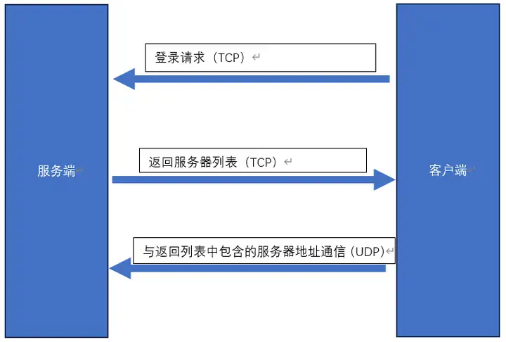 服务端开启后,会先后分别开放两个端口。一个是TCP端口,一个是UDP端口。该游戏的主要通信基于KCP协议进行。而KCP的底层是UDP,所以开放的是UDP端口。TCP端口用于登录分发。用户首先通过TCP端口连接服务器并登录(这个TCP端口也就是我们常说的dispatch端口),然后服务端返回服务器地区(region)列表给客户端。如果列表中只有一个服务器,那么客户端将会直接进入该服务器,而不是显示服务器选择列表。也就是说,要想要显示服务器列表,服务端的配置文件中dispatch配置必须包含多个region配置。