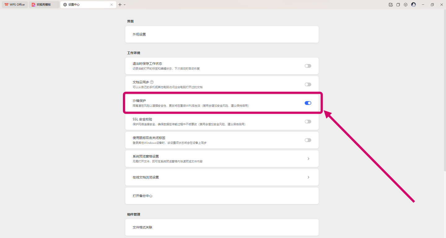关闭沙箱保护