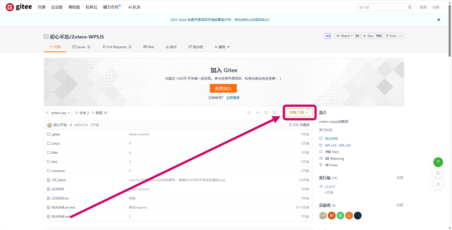 点击克隆/下载